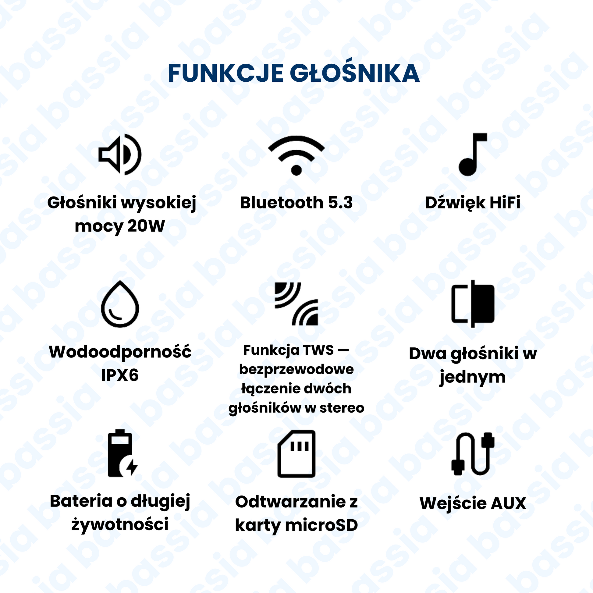 Jakie są specyfikacje techniczne głośnika Bassia™ STEREO?